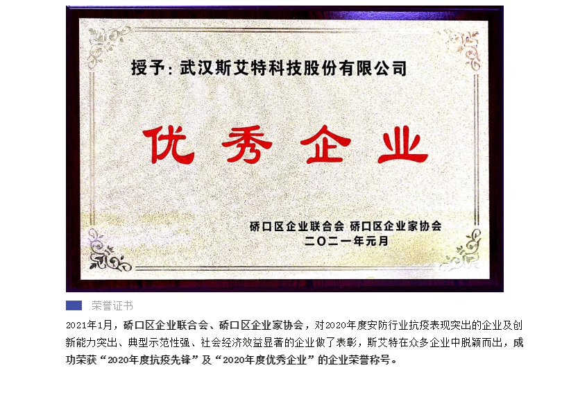 祝賀|斯艾特獲評(píng)2020年度“抗疫先鋒”及“優(yōu)秀企業(yè)”榮譽(yù)稱號(hào)