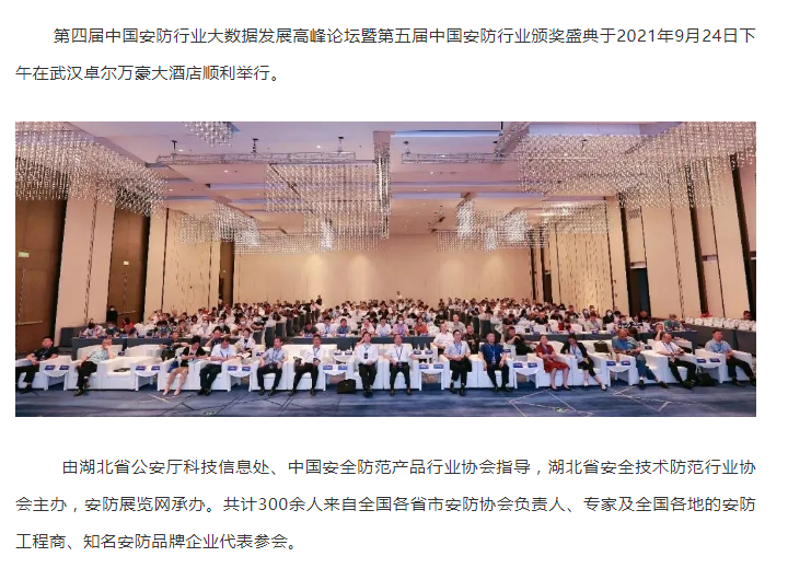 第四屆中國安防行業大數據發展高峰論壇暨第五屆中國安防行業頒獎活動順利舉行