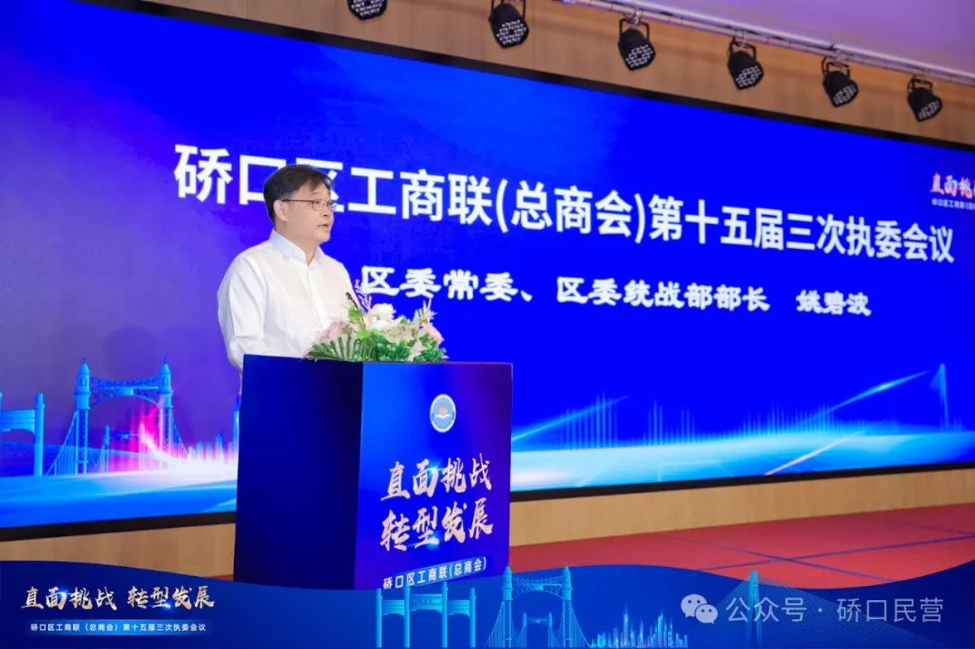 這次大會是在全區(qū)推動民營企業(yè)轉(zhuǎn)型升級,提升民營企業(yè)核心競爭力,實現(xiàn)高質(zhì)量可持續(xù)發(fā)展的新形勢下召開的一次重要會議。會上,區(qū)工商聯(lián)主席、區(qū)總商會會長周云忠作了《硚口區(qū)工商聯(lián)第十五屆三次執(zhí)委會工作報告》,區(qū)委統(tǒng)戰(zhàn)部副部長、區(qū)工商聯(lián)黨組書記劉軍宣讀了《硚口區(qū)工商聯(lián)(總商會)第十五屆三次執(zhí)委會界中調(diào)整建議名單》,增補副主席3名,因工作變動調(diào)整2名,調(diào)出副會長1名,新加入執(zhí)委企業(yè)10名。會議還審議通過了《硚口區(qū)工商聯(lián)第十五屆三次執(zhí)委會調(diào)整方案》及武漢市光彩會硚口分會換屆事項,選舉產(chǎn)生了武漢市光彩事業(yè)促進會硚口分會第二屆理事會理事43名、會長1名、副會長11名、秘書長(兼任)1名。表彰了區(qū)工商聯(lián)(總商會)2023年度優(yōu)秀執(zhí)委企業(yè)和基層商會。