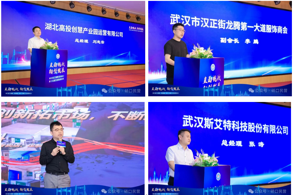 會上,高投創(chuàng)慧大健康產(chǎn)業(yè)園總經(jīng)理劉志云、武漢市龍騰第一大道服飾商會副會長李鵬、武漢怡安居兔寶寶商貿(mào)有限公司總經(jīng)理丁瑤、武漢斯艾特科技股份有限公司董事長張濤等四位優(yōu)秀民營企業(yè)家代表作了經(jīng)驗交流分享。